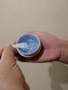 1付属のスパチュラ2杯分くらいを手のひらに取って体温で温める