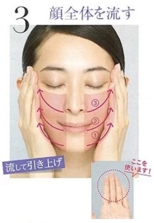 2両ほほ、おでこ、鼻、あごの5箇所に置いて、顔全体に優しく伸ばす